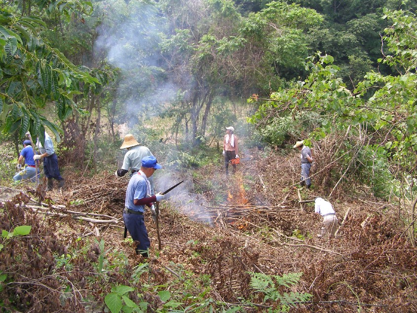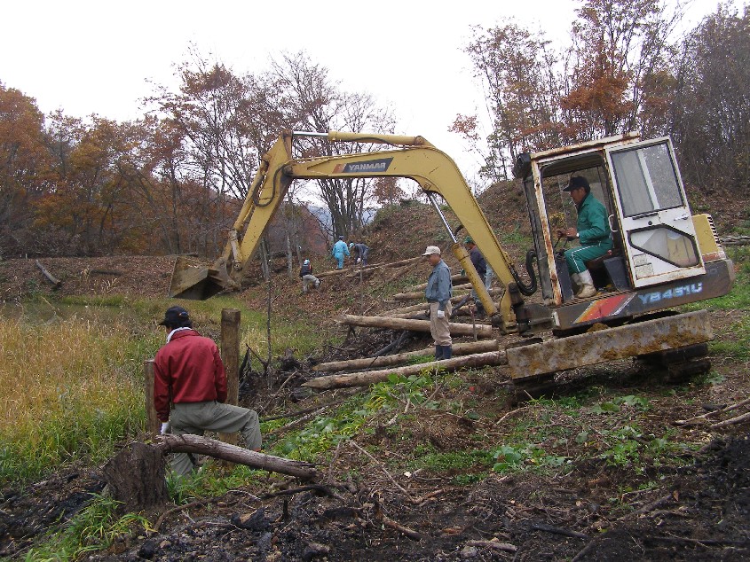 まず最初に取り組んだのはジャングル化した「ため池」周辺の伐採、土砂の浚渫、水門の修理である。地域の人総出