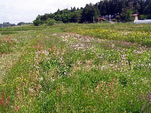野草が侵入して花畑を形成 放棄されると外来種が侵入(セイタカアワダチソウ) 河川敷には一面のセイタカアワダチソウが侵入