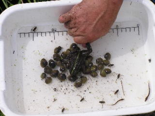 ・一時的水生生物の生息場所が悪化したため、トンボ、ゲンゴロウ、タイコウチなど昆虫を捕獲する昆虫が減少。