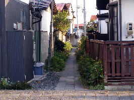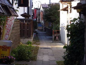 黒船スクエアにある裏路地の修景。土蔵が集積していて雰囲気のある通りだったが、元々水路なので現場打ちのコンクリート水路が
