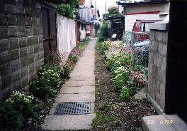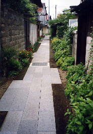 あり見栄えと歩きづらさが問題だった。そこで水路の上に石を敷いて歩きやすさと風景の向上を演出した。